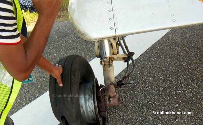 जहाज ल्याण्ड गर्ने क्रममा पछाडिको बाँया पट्टीको टायर पंचर भएको विमानस्थलका प्रमुख सिसेल चित्रकारले जानकारी दिए । उनका अनुसार जहाजमा दुई जना पाइलट मात्र थिए । उनीहरु दुवै जना सकुशल छन् ।